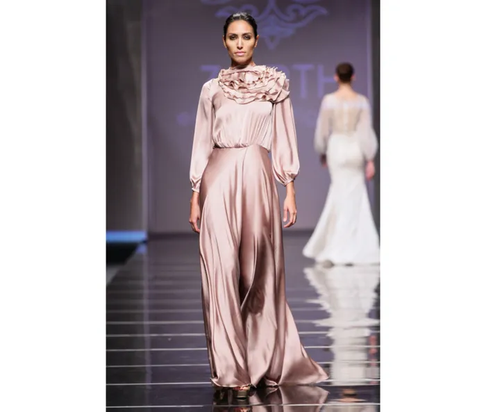 Former Durbanite, Gavin Rajah, presented a black, white and off-white range with cut-out detail and embroidery, while Francois Vedemme’s signature white and cream, with lace, crystals and appliqué, was opulent and elegant.
