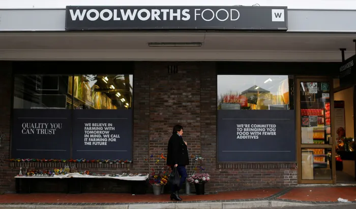FILE PHOTO: A woman walks past an outlet of retailer Woolworths in Cape Town FILE PHOTO: A woman walks past an outlet of retailer Woolworths in Cape Town