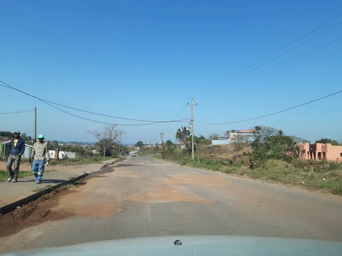 A pothole-riddled part of the M37 road on the KwaZulu-Natal South Coas. Picture: Xolile Mtembu/IOL