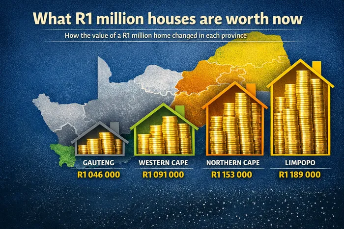 Gauteng, which accounts for the largest share of housing transactions in South Africa, recorded slower price growth of 4.6%. A home worth R1 million a year earlier would now be valued at about R1.05 million.