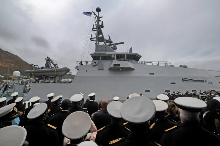 SA Navy celebrated a monumental moment during its launch of the first of three new multi-mission inshore patrol vessels at the naval dockyard in Simon’s Town. Picture: Armand Hough/African News Agency (ANA)