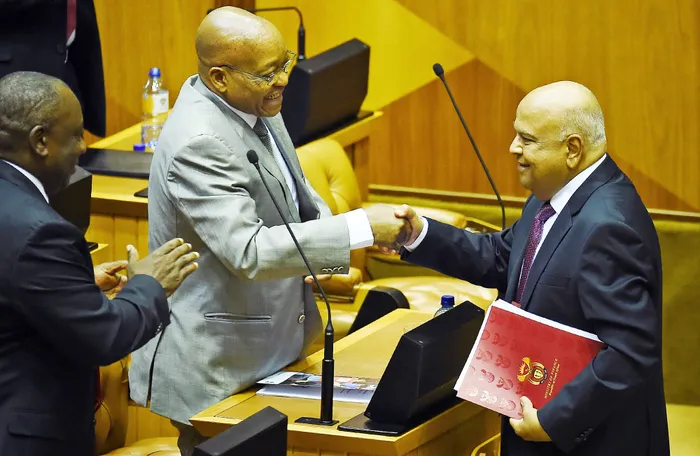 WELL BALANCED: Minister of Finance Pravin Gordhan is congratulated by President Jacob Zuma after his Budget speech in the National Assembly yesterday. Picture: David Ritchie WELL BALANCED: Minister of Finance Pravin Gordhan is congratulated by President Jacob Zuma after his Budget speech in the National Assembly yesterday. Picture: David Ritchie