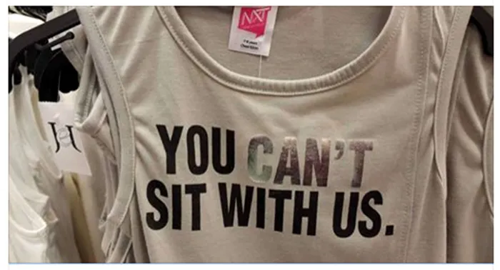 “We would first and foremost like to apologise. We have taken immediate measures to recall the T-shirt in question from all our stores, and we are looking to create a T-shirt with the slogan, ‘You can SO sit with us’.