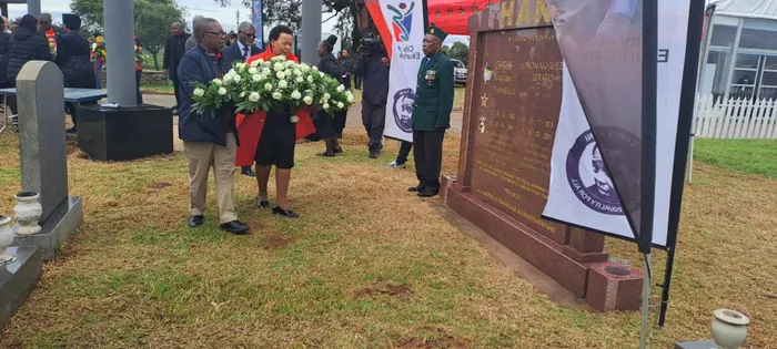 The widow of Chris Hani, Limpho and SACP leader Blade Nzimande laid a wreath at the Chris Hani memorial site at the Thomas Titus Memorial Park in Boksburg. Picture: Bhekikhaya Mabaso/African News Agency/ANA