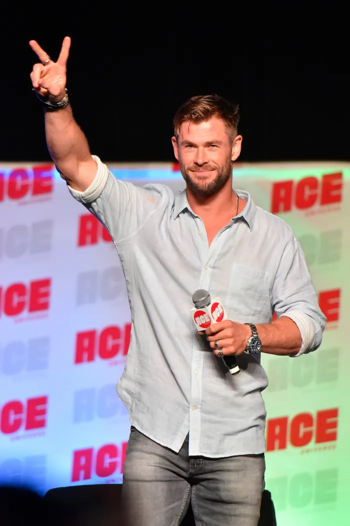 Chris Hemsworth participates during a Q&A panel on day three at the Ace Comic-Con at the Donald E Stephens Convention Center on Sunday, Oct. 13, 2019, in Rosemont, Ill. (Photo by Rob Grabowski/Invision/AP) Chris Hemsworth participates during a Q&A panel on day three at the Ace Comic-Con at the Donald E Stephens Convention Center on Sunday, Oct. 13, 2019, in Rosemont, Ill. (Photo by Rob Grabowski/Invision/AP)
