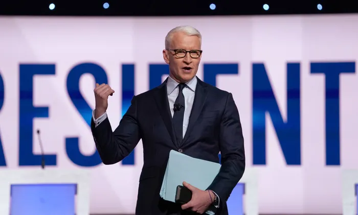 CNN anchor Anderson Cooper talks to the audience before the start of during the fourth U.S. Democratic presidential candidates 2020 election debate in Westerville, Ohio. Picture: Reuters