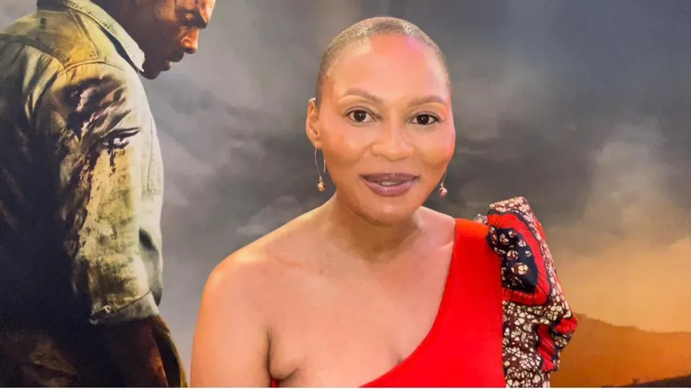 Khuboni, who plays a pilot in “Beast”, looked ravishing in a long red figure-hugging dress with an African-print piece of fabric on the left shoulder.