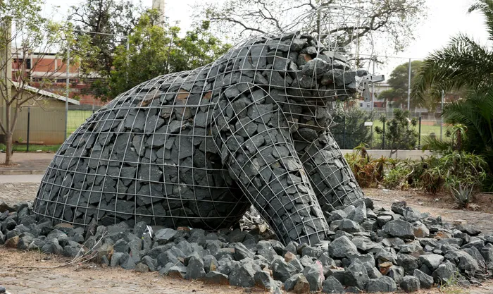 One of Andries Botha’s elephant statues sits beheaded and de-trunked by vandals beside the freeway leading to Warwick Triangle. Picture: SHELLEY KJONSTAD/AFRICAN NEWS AGENCY (ANA)