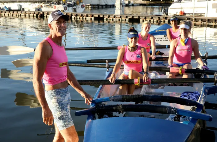 Durban’s surfboat crew, from left, sweep and captain Gary Brummer, Kendra Robinson, Anike Jordaan, Ciarda Sharp and Janeira Reddy of Marine Life Saving Club left yesterday to compete in the Lifesaving World Champs in Australia. Picture: Shelley Kjonstad Independent Newspapers