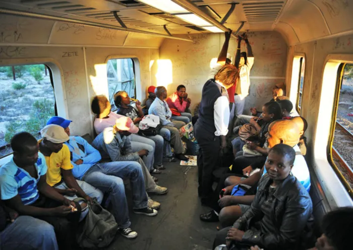 Cape Town 120402- People travelling to khayelitsha sitting on a carriage with no windows. Metrorail tickets has gone up.Picture Cindy waxa.Reporter Janice/Argus Cape Town 120402- People travelling to khayelitsha sitting on a carriage with no windows. Metrorail tickets has gone up.Picture Cindy waxa.Reporter Janice/Argus