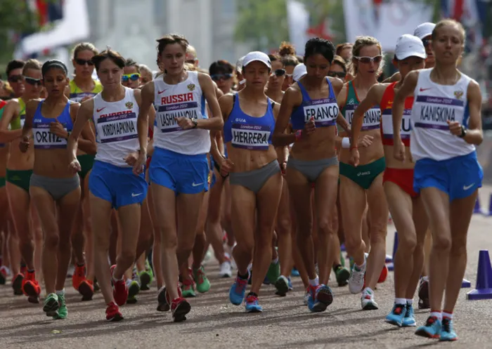 Athletes compete in the women's 20km race walk final at the London 2012 Olympic Games at The Mall on August 11, 2012. Athletes compete in the women's 20km race walk final at the London 2012 Olympic Games at The Mall on August 11, 2012.
