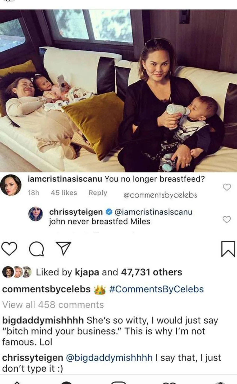 To which Chrissy replied, "John never breastfed Miles." Ouch!