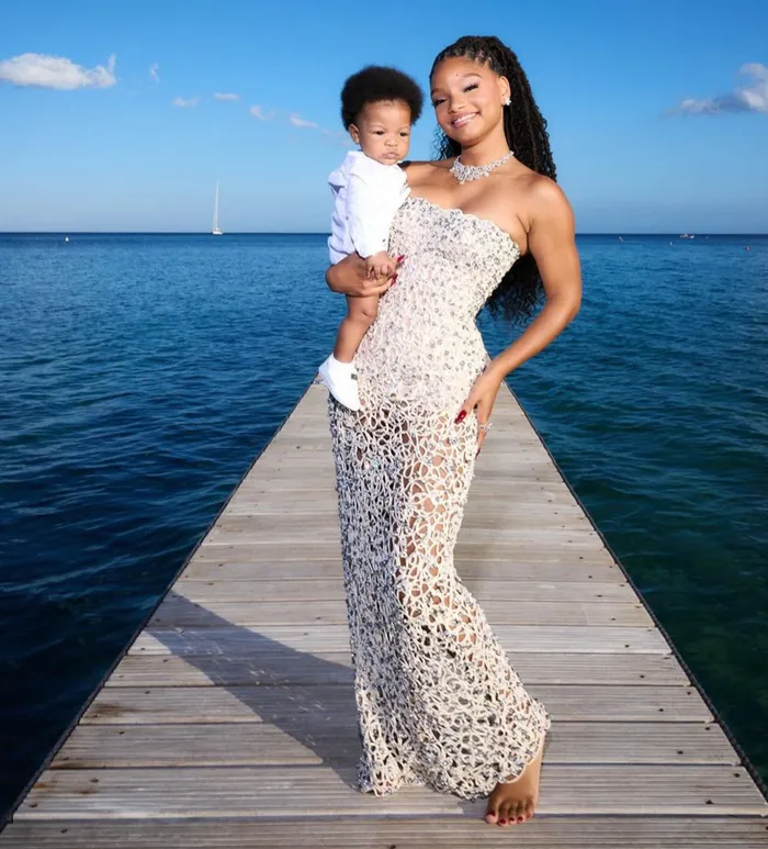 Halle Bailey with her son, Halo. Picture: Instagram/HalleBailey