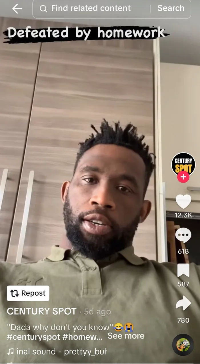 In a video posted on TikTok, the Springbok captain admits that doing homework with his kids is a humbling experience.
