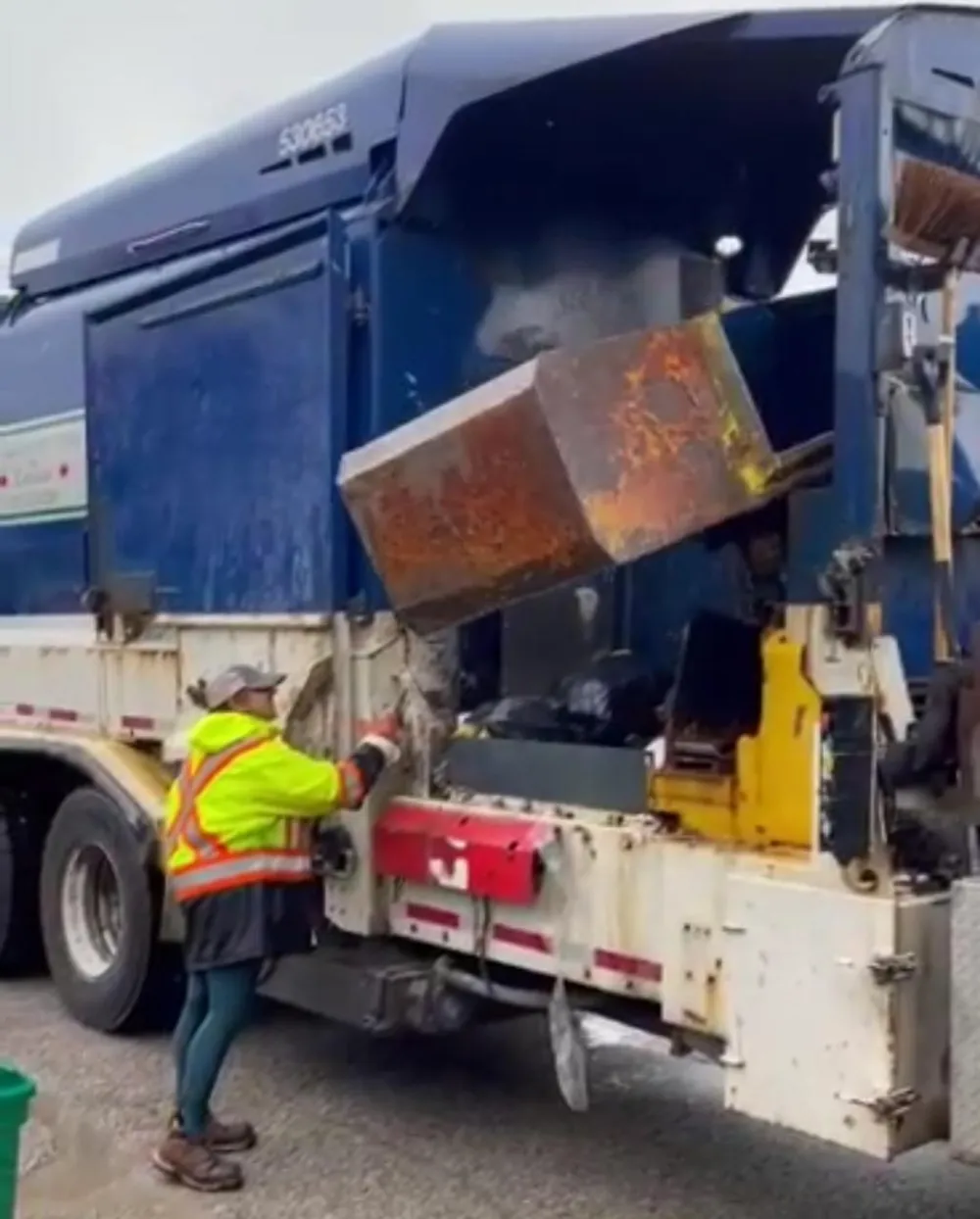 A video circulating on social media posted by a South African living abroad aims to show South Africans how one person collects refuse and drives the collection truck in Canada, while in SA 'five' are said to be needed. Canadian solid waste worker collects refuse and drives the collection truck in a video circulating on social media, which aims to show South Africans how the Canadians do it. Picture: Screen grab of video.