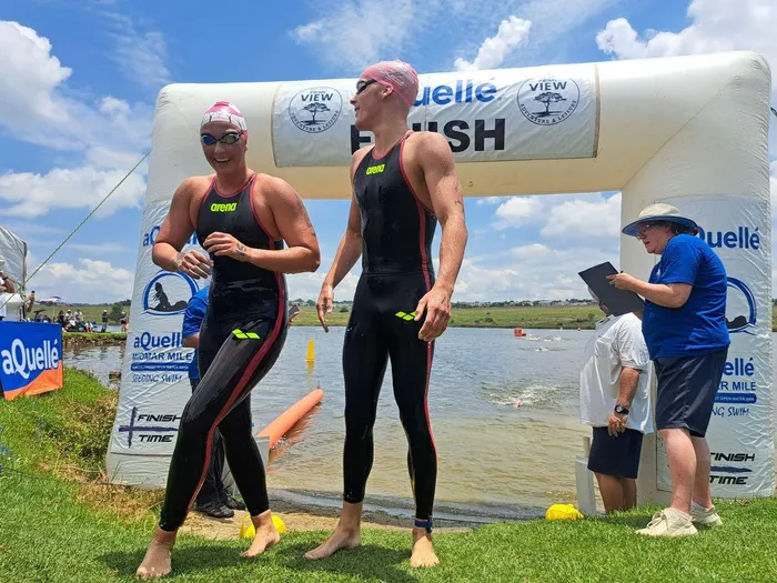 Carli Antonopoulos (left) was the first woman home, and fifth swimmer overall, at the final seeding swim for the event at Prime View Adventure & Leisure in Midrand on Sunday.