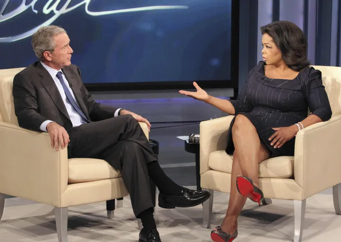 Talk show host Oprah Winfrey interviews former US president George Bush during the taping of The Oprah Winfrey Show at Harpo Studios in Chicago. Talk show host Oprah Winfrey interviews former US president George Bush during the taping of The Oprah Winfrey Show at Harpo Studios in Chicago.