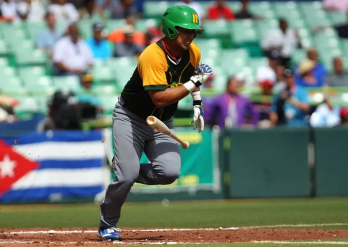 Cuba's catcher Frank Camilo Morejon runs to first base during a Caribbean Series baseball game against Dominican Republic, in San Juan, Puerto Rico. AP Photo/Ricardo Arduengo Cuba's catcher Frank Camilo Morejon runs to first base during a Caribbean Series baseball game against Dominican Republic, in San Juan, Puerto Rico. AP Photo/Ricardo Arduengo
