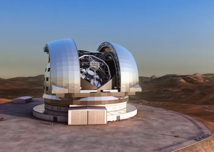 This handout artist's impression released by the European Southern Observatory shows the European Extremely Large Telescope (E-ELT) in its enclosure on Cerro Armazones, a 3060-metre mountaintop in Chile's Atacama Desert. This handout artist's impression released by the European Southern Observatory shows the European Extremely Large Telescope (E-ELT) in its enclosure on Cerro Armazones, a 3060-metre mountaintop in Chile's Atacama Desert.
