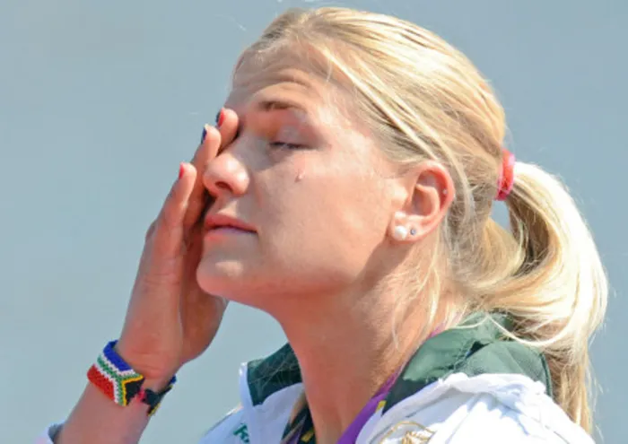 Bridgitte Hartley, of Richards Bay, sheds a tear of joy on getting her bronze medal for the women's kayak single 500m at Eton Dorney, near Windsor, England, on Thursday, August 9, 2012. Picture: Wessel Oosthuizen Bridgitte Hartley, of Richards Bay, sheds a tear of joy on getting her bronze medal for the women's kayak single 500m at Eton Dorney, near Windsor, England, on Thursday, August 9, 2012. Picture: Wessel Oosthuizen
