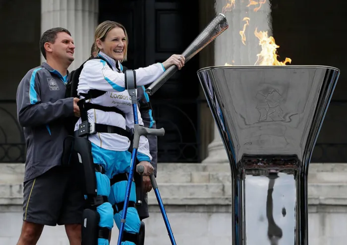 Lomas earlier this year used the suit to complete the London Marathon in 17 days, raising about 200,000 pounds (about R2.4-million) for research into spinal damage, and she was recently given the job of lighting the Paralympic cauldron in Trafalgar Square.