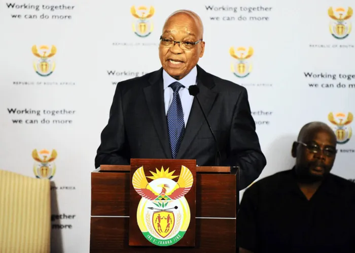 17/10/2012 President Jacob Zuma addresses the media following a meeting with labour, business and ministers in the economic cluster at the Union Buildings. Picture: Phill Magakoe 17/10/2012 President Jacob Zuma addresses the media following a meeting with labour, business and ministers in the economic cluster at the Union Buildings. Picture: Phill Magakoe