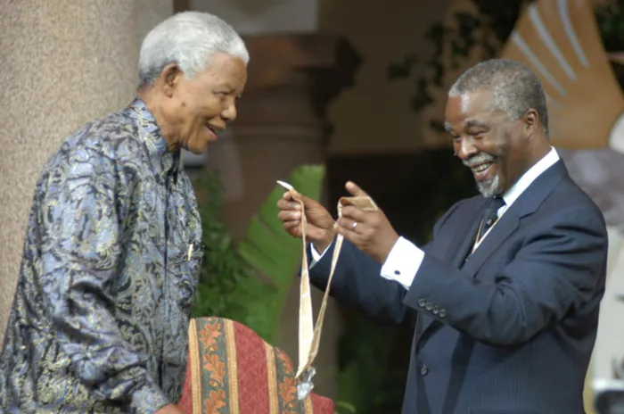 Thabo Mbeki awards Nelson Mandela the Order of Mapungubwe in Platinum for exceptional and unequalled contribution to the liberation struggle, national reconciliation and nation building in this file picture. The writer says after 20 years of democracy, minorities are not concerned about national unity and use Mandela's iconic status to pursue their narrow interests. Thabo Mbeki awards Nelson Mandela the Order of Mapungubwe in Platinum for exceptional and unequalled contribution to the liberation struggle, national reconciliation and nation building in this file picture. The writer says after 20 years of democracy, minorities are not concerned about national unity and use Mandela's iconic status to pursue their narrow interests.