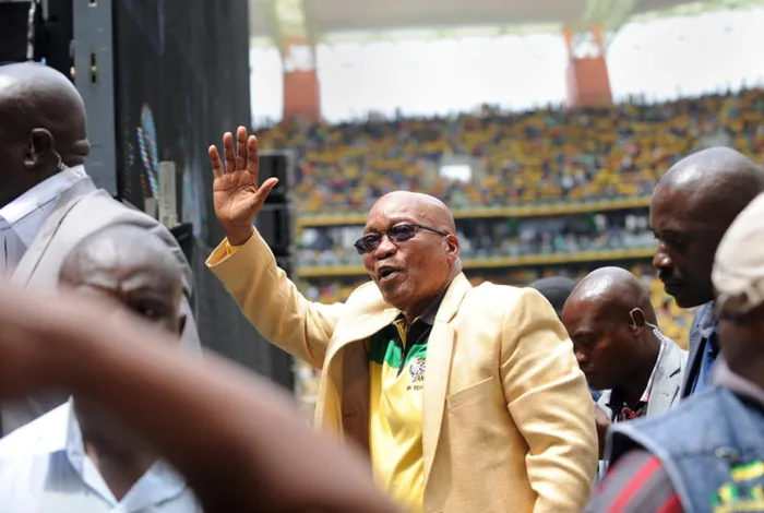 President Jacob Zuma greets supporters at the ANC's 102-year celebration and manifesto launch rally at Mbombela Stadium in Nelspruit, Mpumalanga, on Saturday. Picture: Dumisani Sibeko President Jacob Zuma greets supporters at the ANC's 102-year celebration and manifesto launch rally at Mbombela Stadium in Nelspruit, Mpumalanga, on Saturday. Picture: Dumisani Sibeko