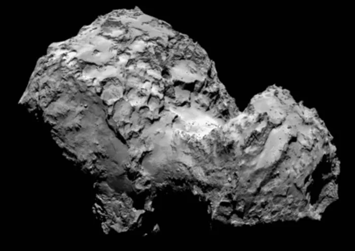 2014 file photo taken by Rosetta's OSIRIS narrow-angle camera Comet 67P/Churyumov-Gerasimenko is pictured from a distance of 285km. 2014 file photo taken by Rosetta's OSIRIS narrow-angle camera Comet 67P/Churyumov-Gerasimenko is pictured from a distance of 285km.