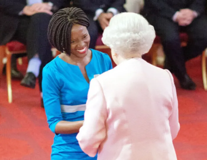 Queen Elizabeth and Nosipho Bele share a laugh at Buckingham Palace this week. Bele, originally from Verulam, is one of 60 awardees in the Queen's Young Leaders programme. She runs a mentorship programme in Nyanga near Cape Town. Queen Elizabeth and Nosipho Bele share a laugh at Buckingham Palace this week. Bele, originally from Verulam, is one of 60 awardees in the Queen's Young Leaders programme. She runs a mentorship programme in Nyanga near Cape Town.