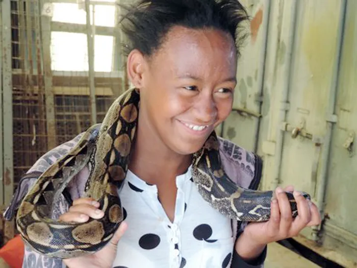 A pupil unwinds as she participates in a snake show during one of Adopt-a-Pet’s Humane Education Programmes. A pupil unwinds as she participates in a snake show during one of Adopt-a-Pet’s Humane Education Programmes.