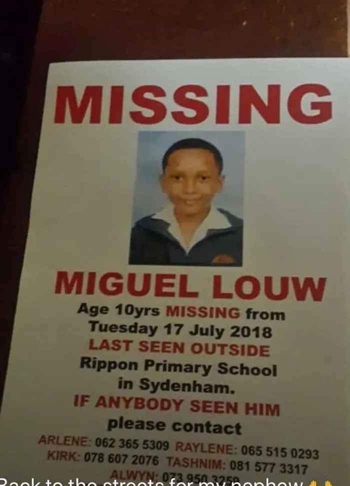 Durban - It has been 34 days since Sydenham boy, Miguel Louw, was allegedly kidnapped while walking home from school.
