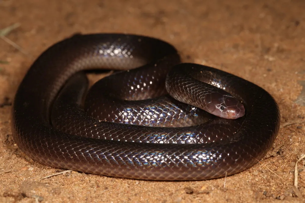 The Thread/Worm Snake: This snake can cause confusion, as it looks exactly like a worm! A tiny snake, usually around 10cm in length +-. Shiny black body which it wriggles around when threatened. Absolutely nothing to worry about.