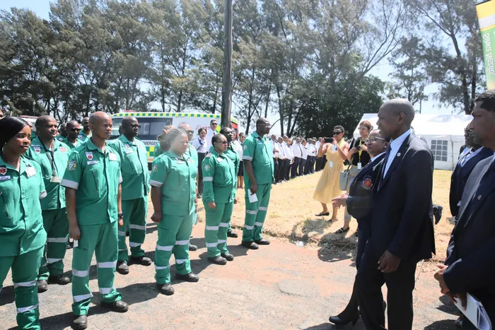 AT the launch of National EMS Day, the new 112 emergency number, and new branding of vehicles, uniforms, rank and medical insignia were also unveiled and are now standardised across the country. Picture: NQOBILE MBONAMBI African News Agency (ANA) AT the launch of National EMS Day, the new 112 emergency number, and new branding of vehicles, uniforms, rank and medical insignia were also unveiled and are now standardised across the country. Picture: NQOBILE MBONAMBI African News Agency (ANA)