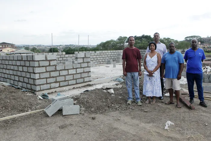 The Phoenix Civic Association at the site where the building of a housing complex is underway on Redfern Sports ground. Pravin Nundkissor, Alice Govender, Akesh Teeruth, Shane Bachan and John Pillay. Picture by Sibonelo Ngcobo. The Phoenix Civic Association at the site where the building of a housing complex is underway on Redfern Sports ground. Pravin Nundkissor, Alice Govender, Akesh Teeruth, Shane Bachan and John Pillay. Picture by Sibonelo Ngcobo.