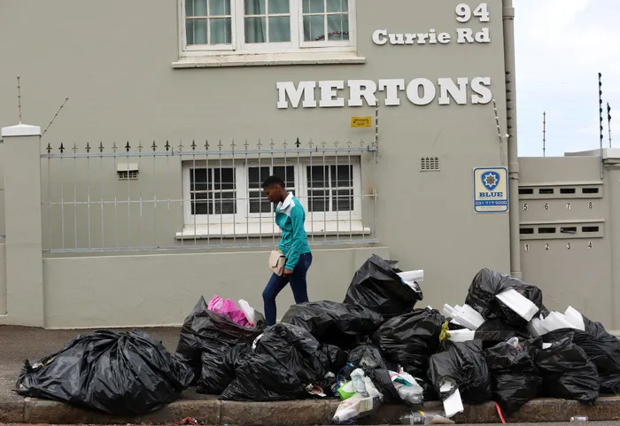 A man walks past a pile of rubbish in Musgrave after DSW workers at the Springfield depot downed tools for over a week over a dispute with management. Picture: Motshwari Mofokeng / African News Agency / ANA
