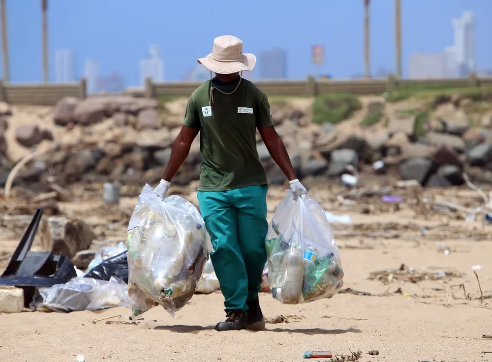 Service provider CBN consulting spokesperson Ntsakisi Malabi said a deluge of litter had flowed down the Umgeni River. Malabi expects the tree branches and logs sprawled on the beach sand to be raked up and removed by the end of the week. This week tons of litter on the beach sand and inside the mangroves was removed by hand and placed into bags for removal.