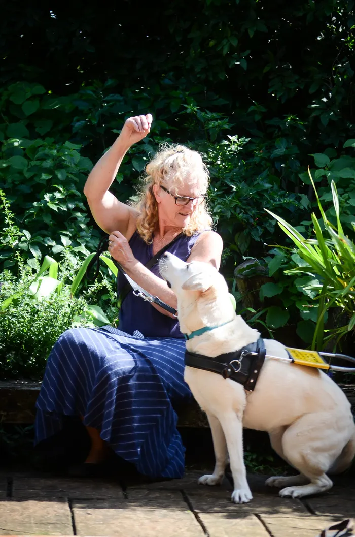 Joanne Garrett, 59, who is visually impaired, has had Enid, a white Labrador, as a guide dog for three years.