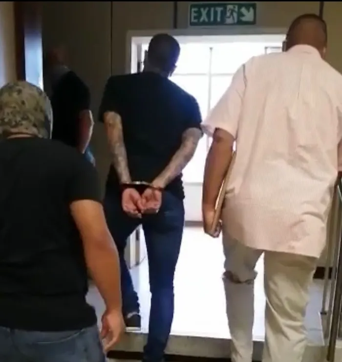 Alleged Wentworth gang boss, Dane Majority the apparent leader of the Hollywood gang in handcuffs at the Durban Regional Court. Picture: Screengrab.