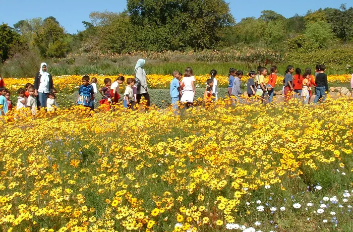 Flower children Tripping through the daisies: school children enjoy the blossoming spring annuals at Kirstenbosch. Here they were celebrating the inclusion of the garden in the Cape Floristic Region World Heritage Site. The Cape Floristic Region is the only biodiversity hotspot found within the borders of one country and contains 20% of Africa’s flora. It has over 9 000 species of plants of which about 6 200 are endemic.