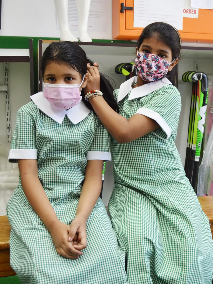 SISTERS Shruti, 9, and Drishti Hariparsad, 7, fitted their new Sherwood Primary School uniform for the coming academic year 2022, at the Gems schoolwear in Overport. They were accompanied by their father. | Tumi Pakkies African News Agency (ANA)