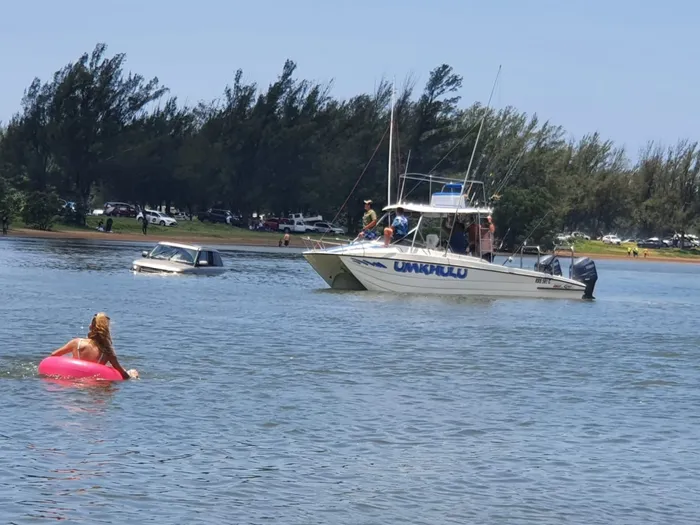 Only the top half of a Rover could be seen sticking out of the water off a Richards Bay beach after the driver showboated in front of beachgoers.