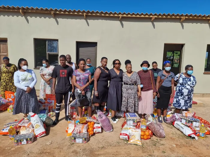 In the centre, wearing black dresses, are KwaZulu-Natal Deputy Director of Public Prosecutions advocate Fatima Khawula and Nonhlanhla Ngubane, wife of businessman Boni Ngubane, Pastor Bongiwe Cele and the beneficiaries. Photo: Willem Phungula