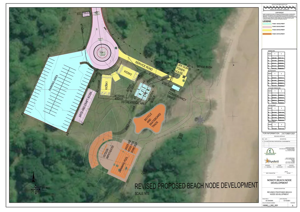 “It shall provide for a primary access road, pedestrian walkway, street lighting, internal service roads, parking areas, bus and taxi stopping areas, ablution facilities, lifeguard building and eatery, conservancy tanks, informal traders’ kiosks, bicycle and skateboard track, outdoor amphitheatre, swimming pool, internal footpaths, water and electrification, stormwater accommodation and educational initiatives highlighting the heritage of the area,” Mkhize said.