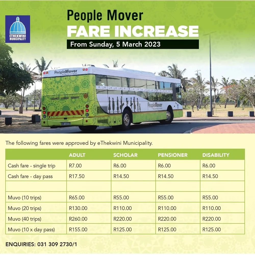 Recently, the municipality announced that the annual fare increase of R1 for the People Mover bus will come into effect from March 5, 2023.