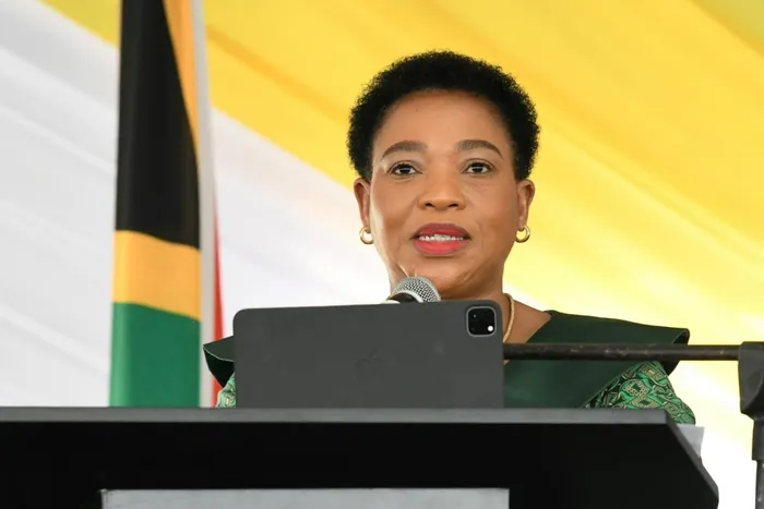 KwaZulu-Natal Premier Nomusa Dube-Ncube delivers keynote address at the Human Rights Day event held at the Solomuzi Sports Field at Mondlo in Vryheid yesterday picture: supplied