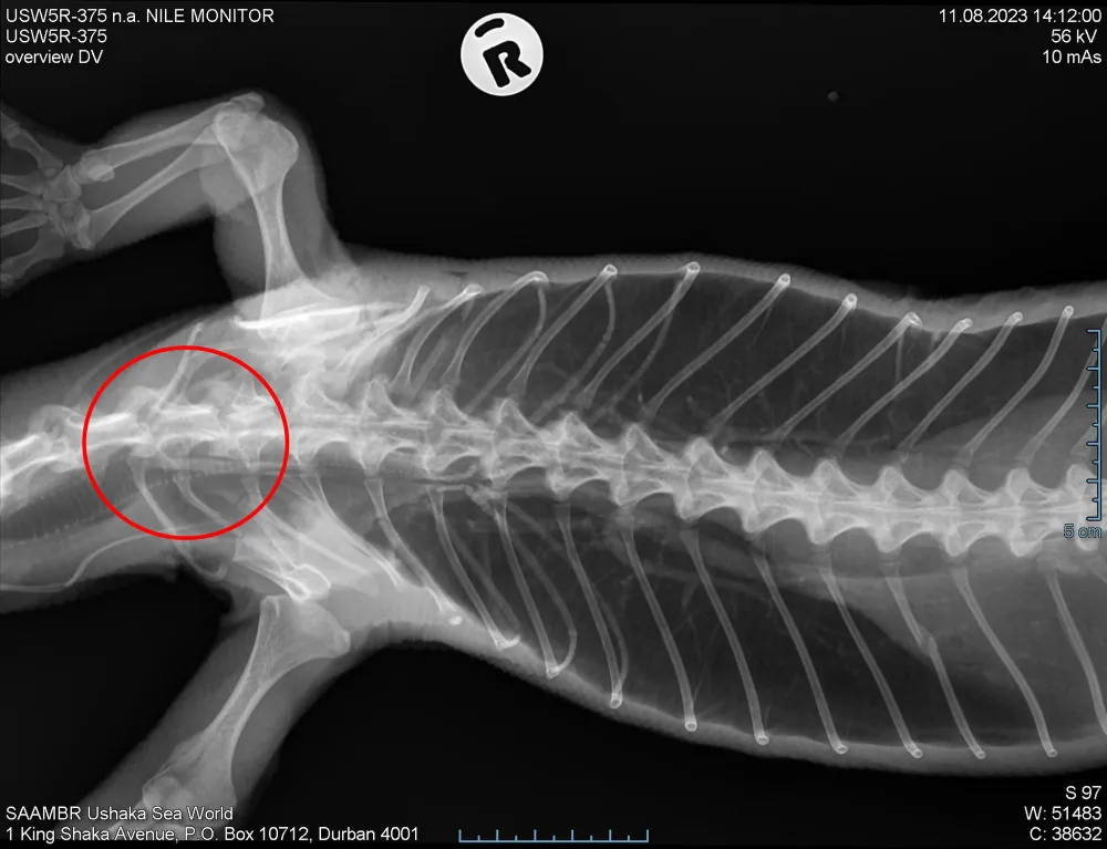 In the X-ray, you can see the damage to the monitor’s vertebra. Picture: South African Association for Marine Biological Research