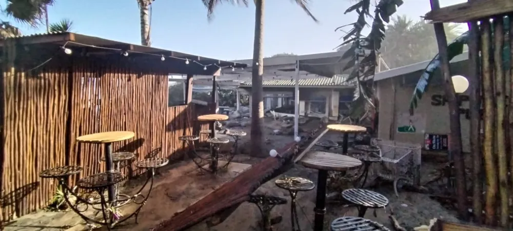 At least seven people were injured when a freak wave crashed into a restaurant at Marina Beach, near Southbroom, on the South Coast of KwaZulu-Natal. Picture: Mi7 National Group