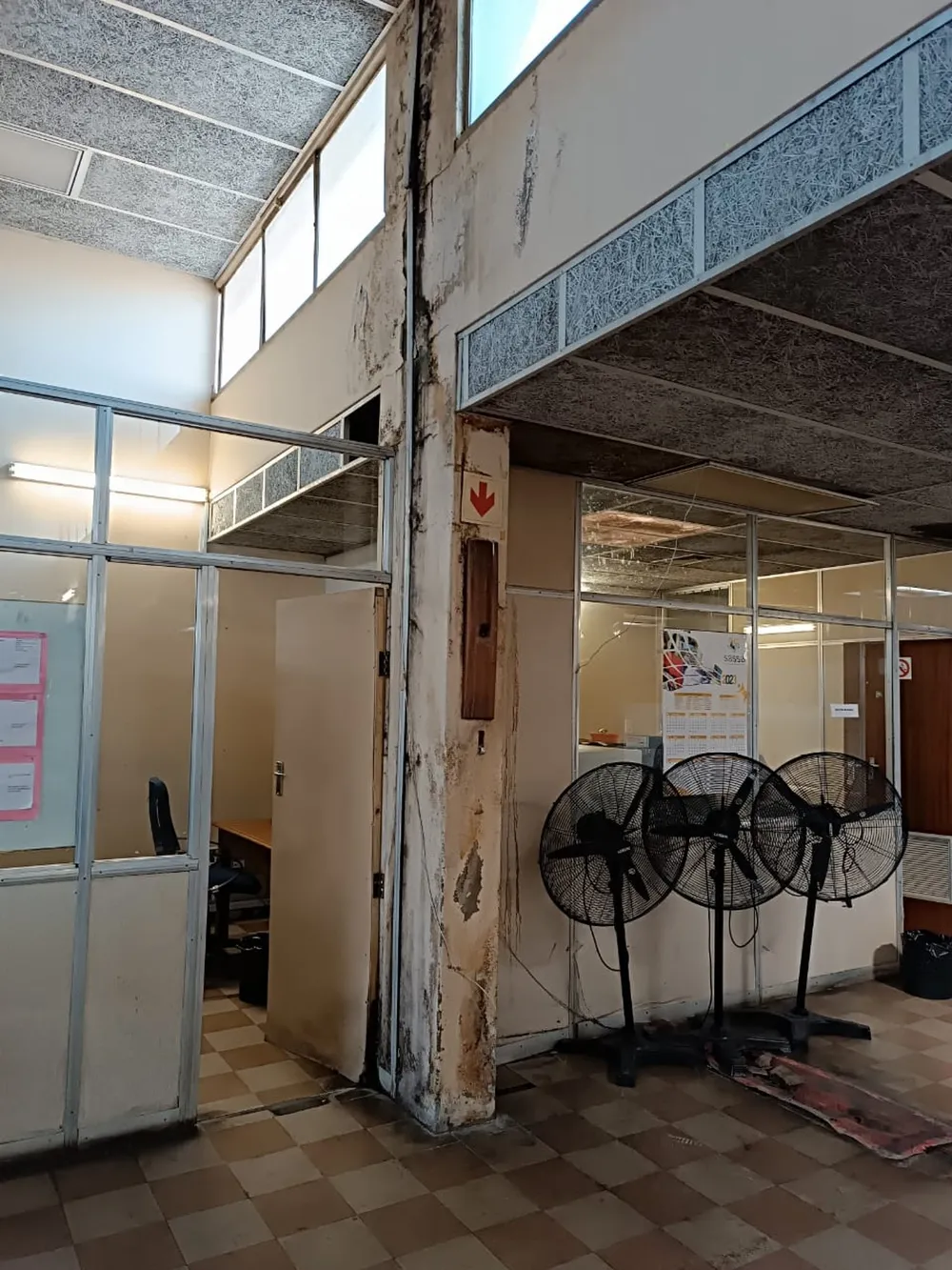 The Daily News visited the building on Wednesday and saw that parts of the office area were still leaking and buckets had been placed to collect water from the leaks. Parts of the building floor had water stains. The outside of the building looked dilapidated. There was also a Home Affairs truck parked inside the property.