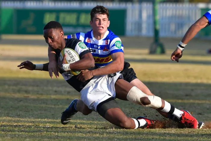 Sharks fullback Aka Boqwana is tackled with the ball on the first day of the U18A Craven Week. | Sydney Seshibedi Gallo Images)